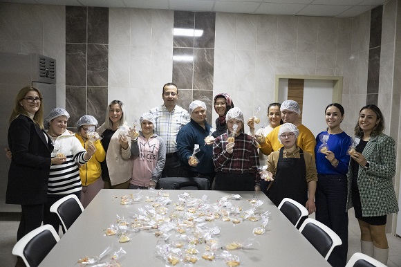 Engelsiz Yaşam Merkezi’nde Usta Öğretici olarak görev yapan Durdu Gürbüz de, “Bugün özel şeflerimizle mutfağa girdik. Deprem bölgesinden gelen vatandaşlarımız için kurabiye yapıyoruz. Bugün ayrıca özel bir gün; 21 Mart Down Sendromu Farkındalık Günü. O yüzden bugün çocuklarımız da çok eğlenceli, çok mutlu. Kurabiyeleri severek yaptılar. Deprem bölgesinden gelen arkadaşlarına ikram etmekten de çok mutlular. Keyifli geçiyor” diye konuştu.
